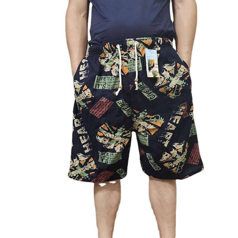 กางเกงลำลองผ้าไหมเย็นผู้ชาย แบบผ่า ทรงขา 9 ส่วน พิมพ์ลาย